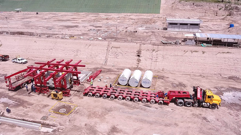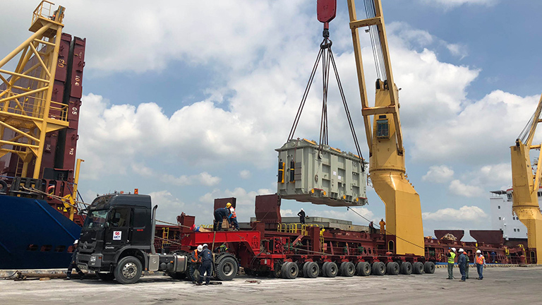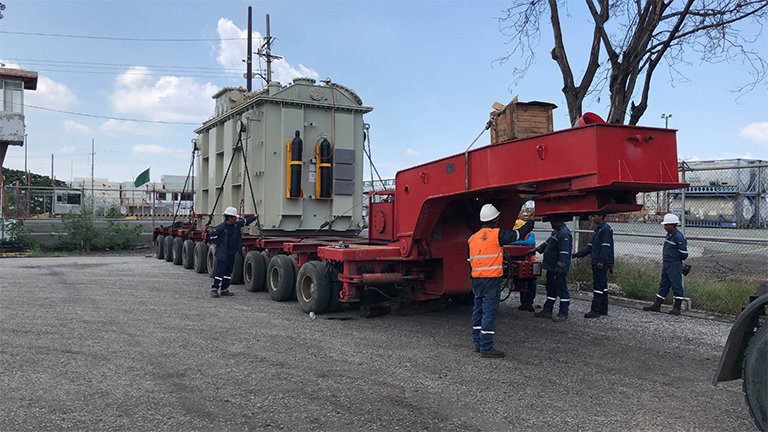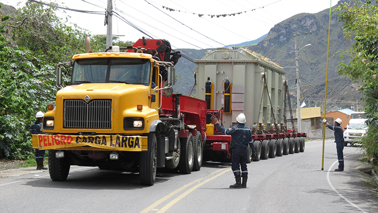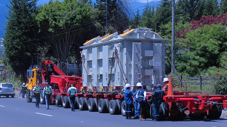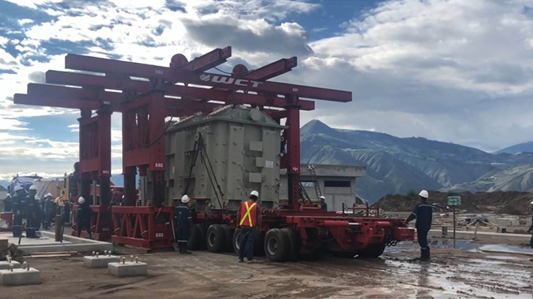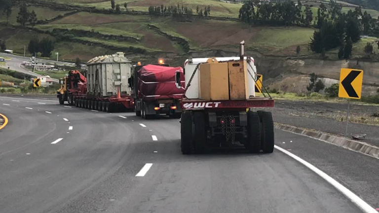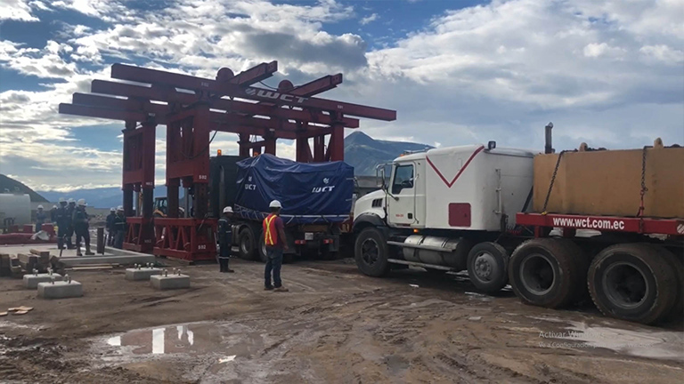 WCT ha sido el encargado del transporte de este transformador de energía que llegó de China al puerto en Guayaquil. Con un peso de 93 toneladas y con destino final en la subestación eléctrica de Pimampiro en Ibarra.