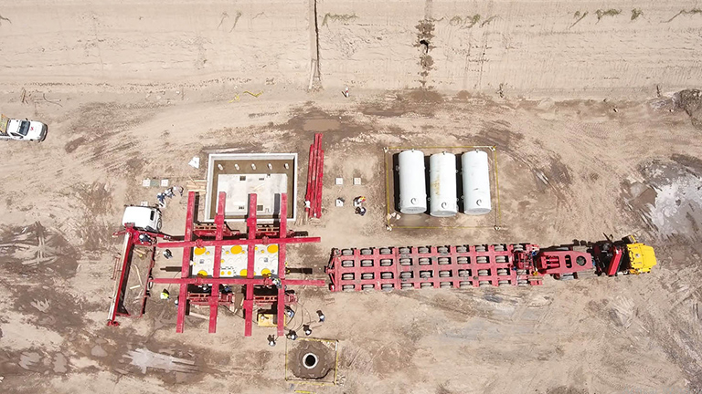 Para remolcar la carga, utilizamos la fuerza de un camión Paystar, que cuenta con una gran capacidad de arrastre y, además, se utilizaron otros cabezales de características similares al Paystar a modo de remolque y frenado del vehículo que transportaba la carga. Ambos cabezales cargaron contrapesas para conseguir una mayor tracción. Cuando el camión encargado de transportar la carga necesitaba más potencia, se colocaban los dos camiones, cada